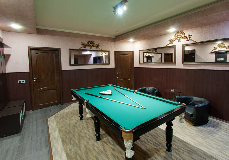Для банных процедур в большом зале есть финская сауна, куда можно взять веники, а также хаммам с влажным паром. После парилок можно полежать в комнате отдыха на комфортабельной кровати. В качестве развлечений для гостей имеется цифровое телевидение, караоке, а также отдельная комната с профессиональным столом и инвентарем для игры в бильярд.