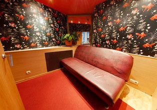 Для застолья есть уютная зона с кожаными диванами, где можно душевно поболтать с друзьями за ароматным чаем и аппетитными угощениями, которые вы можете принести с собой или заказать доставку горячих блюд из бара, ресторана или кафе.